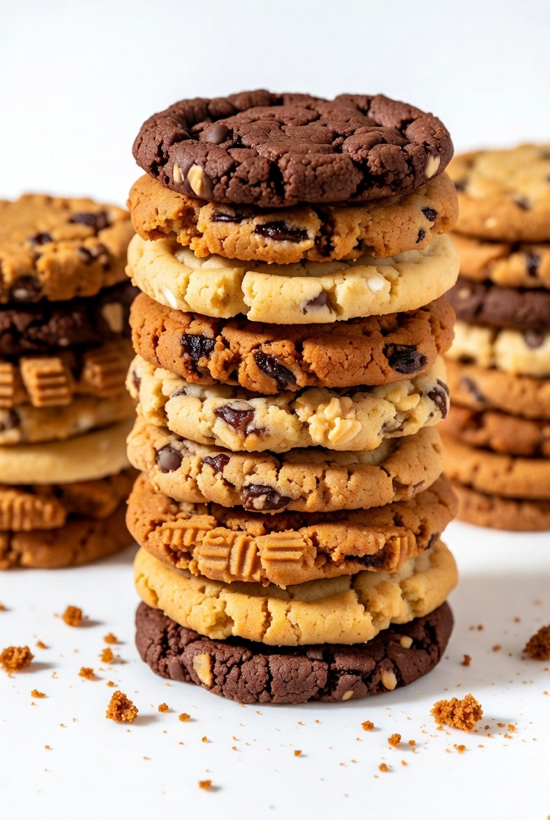 Chocolate chip, Snickerdoodle, Cowboy, Peanut Butter, Oatmeal, Raisin filled, Sugar, Butter, Shortbread